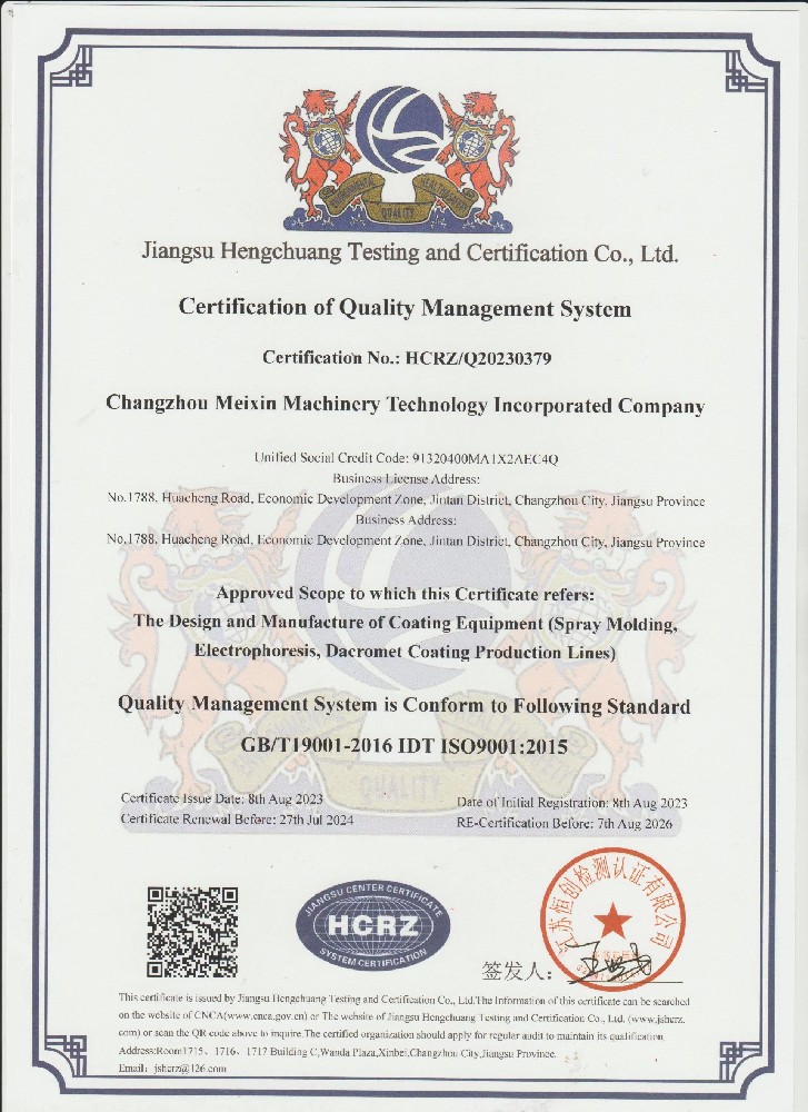 全自動(dòng)達(dá)克羅涂覆生產(chǎn)線(高新技術(shù)產(chǎn)品認(rèn)證證書)